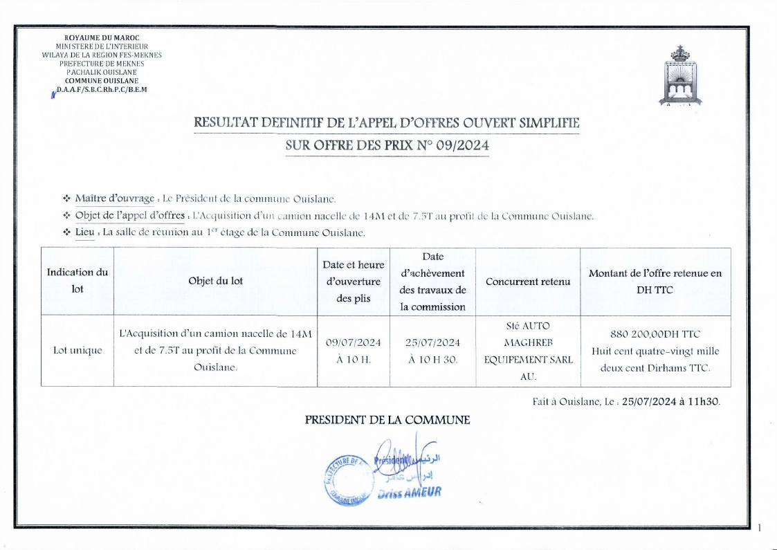 النتيجة النهائية لطلب العروض رقم 09/2024