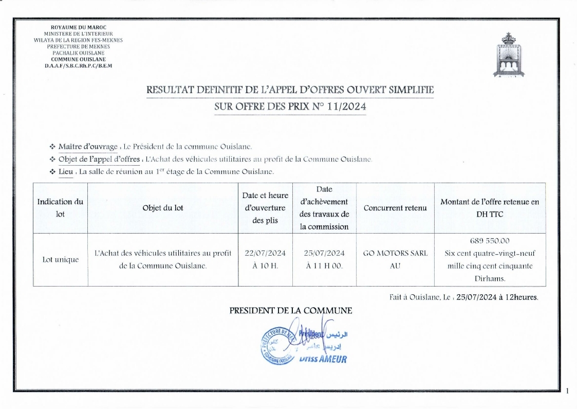 النتيجة النهائية لطلب العروض رقم 11/2024