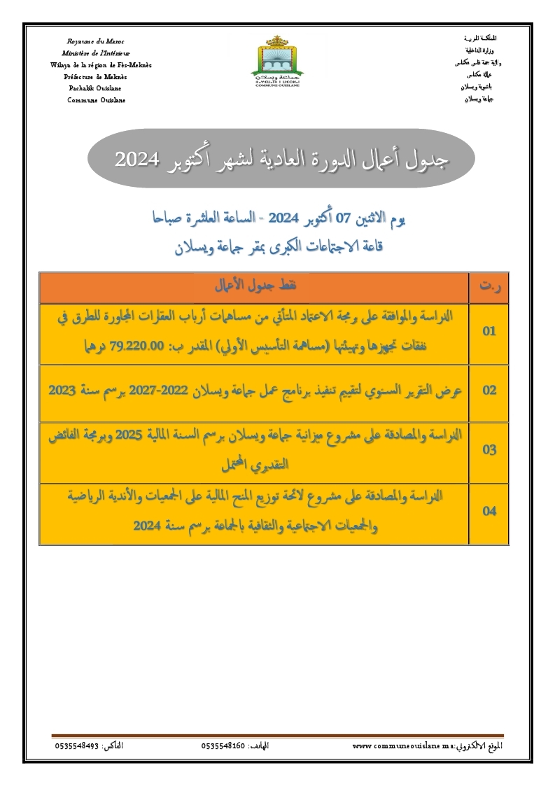 جدول أعمال الدورة العادية لشهر أكتوبر 2024
